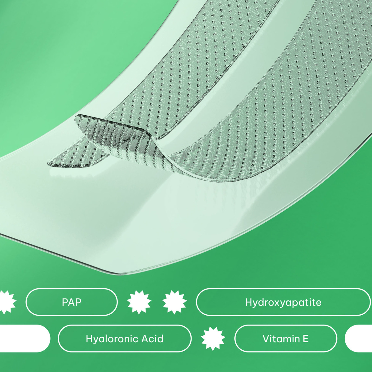PVP, PAP, Glycerin, Xylitol, Aqua, Cellulose Gum, Aroma, Carbomer, Hydroxyapatite, Citric Acid, Hyaluronic Acid, Sodium Benzoate, Tocopherol, Pyridoxine HCL, Sodium Hydroxide